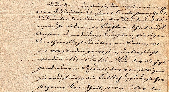 Nachdem nun diese, dermalen in meh-/ rern Districten Unserer Lande herrschende/ und unter dem Namen der Maul- und Klau-/ enseuche bekannte Viehkrankheit auf/ Unsere Anordnung, durch den hiesigen/ Oberthier-Arzt Reutter an Orten, wo/ sie vorhanden gewesen, untersucht/ worden ist; So lassen Wir dir beyge-/ hend einen Extract der von selbigem/ hierauf über die Entstehungsursachen/ sothaner Krankheit, so wir über die/ |